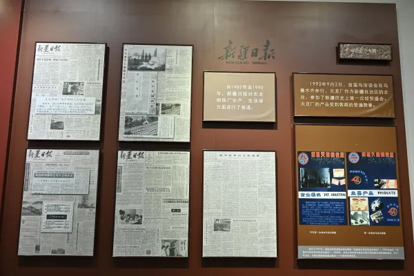 馆内收藏的600余件实物、280幅图片,每一件都承载着岁月的温度,每一幅都镌刻着动人的过往。发黄的《新疆日报》记录着天龙钢铁厂的辉煌岁月,第一座高炉的建设照片、第一炉钢水浇铸的瞬间、第一块“红双喜”铁水铸件,诉说着这片土地上的工业传奇;油画《风雪兄弟》背后,各族职工患难与共、生死相依的民族团结故事,为这份奋斗史诗添了几分滚烫的温情。